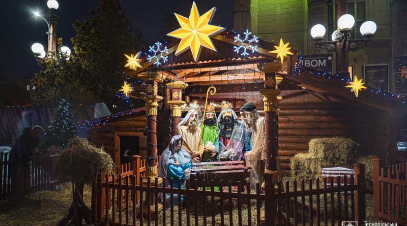 У Тернополі на Театральному майдані урочисто освятили різдвяну шопку. Перед початком освячення священнослужителі різних конфесій спільно помолилися за мир в