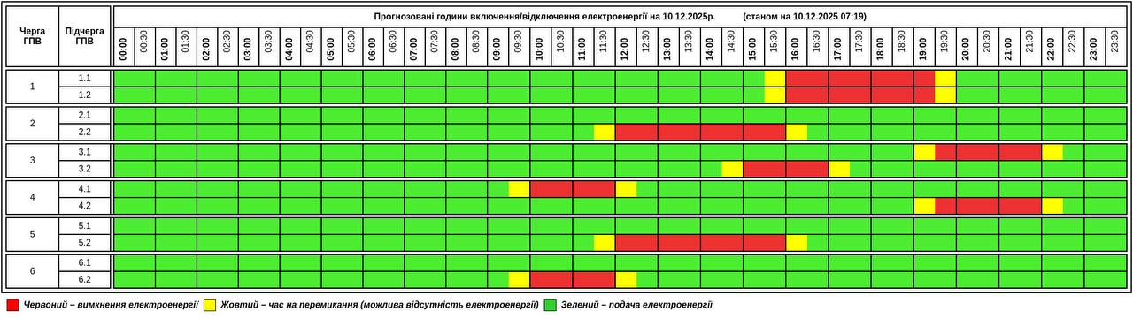 ⏰Згідно вказівки НЕК “Укренерго” 10.12.2025 на території Тернопільської області діятиме Графік погодинних відключень (ГПВ).