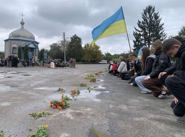 Жителі громади, рідні, друзі та небайдужі мешканці вийшли на дорогу на зустріч кортежу, щоб віддати останню шану полеглому воїну. Люди з квітами та прапорами стояли на колінах, утворюючи живий коридор пам’яті.