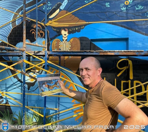 — Перший великий проект — це стінопис для Тернопільської студії телебачення. В Чорткові я долучався до двох муралів. Найвідоміший з них — мурал на стіні Чортківської публічної бібліотеки, де разом із архітекторкою Олесею Хмелик і художниками Ольгою та Яковом Біленками ми створили ціле художнє полотно, яке зображає історичний контекст міста.
