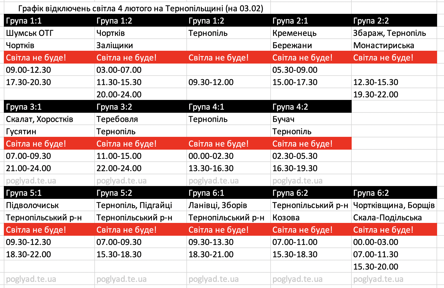 ⏰Згідно вказівки НЕК “Укренерго” 04.02.2026 на території Тернопільської області діятиме Графік погодинних відключень (ГПВ).