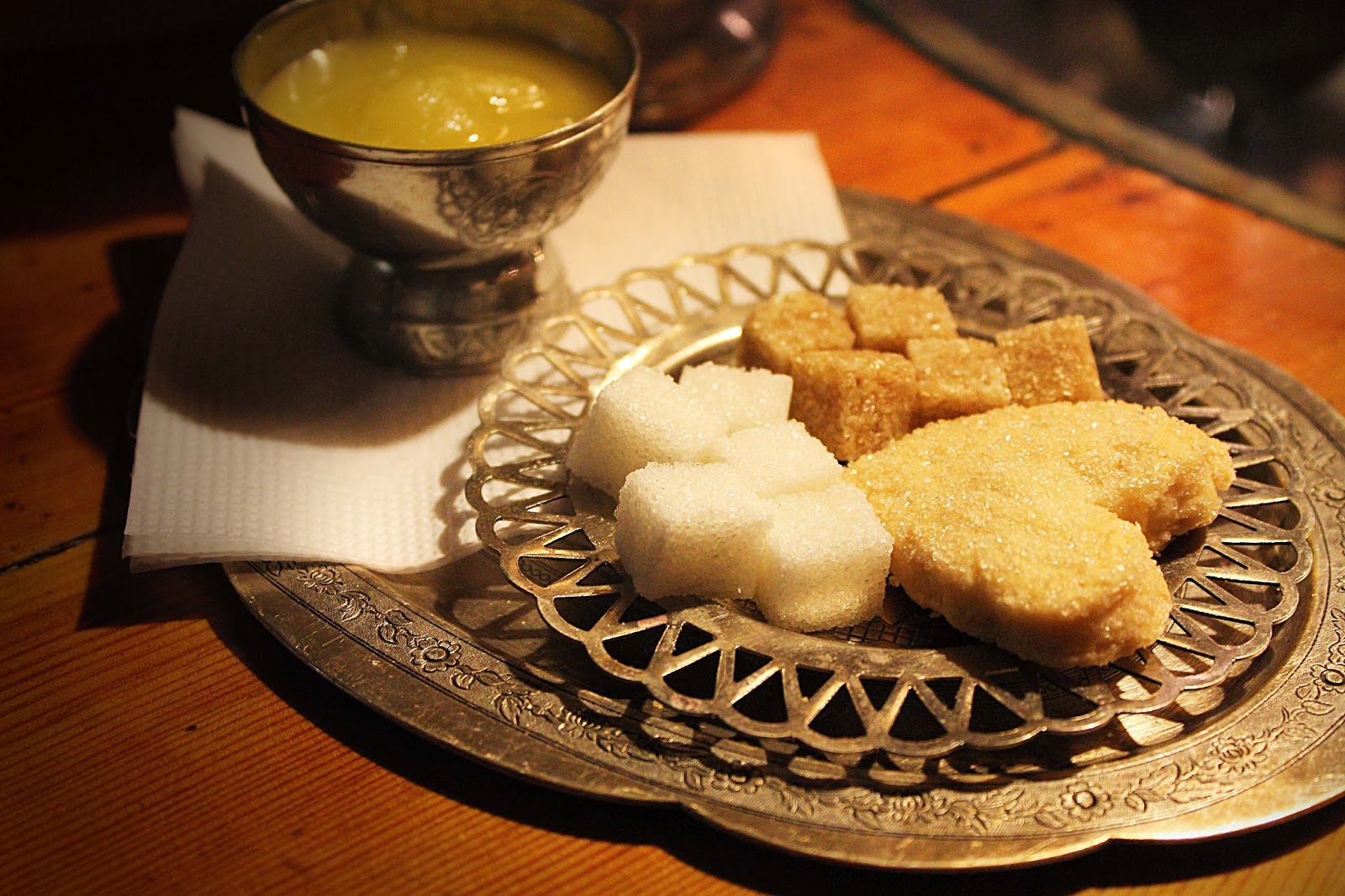 До чаю додавались мед, два види цукру і хрумке печенько (знаю такі, печуться на смальці – в мене навіть така формочка сердечком є!)