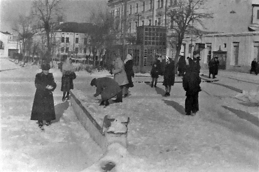 Так пані Шапокляк дозволяла собі напустивши з автомата стакан газованої води без сиропу перед Театральною площею, стоячи приблизно перед нинішнім монументом незалежності голосно проголошувати цілі промови на політичні теми, що були пронизані тостами: – Вип’ємо за Леніна! Вип’ємо за Сталіна! Вип’ємо і знову наллємо!