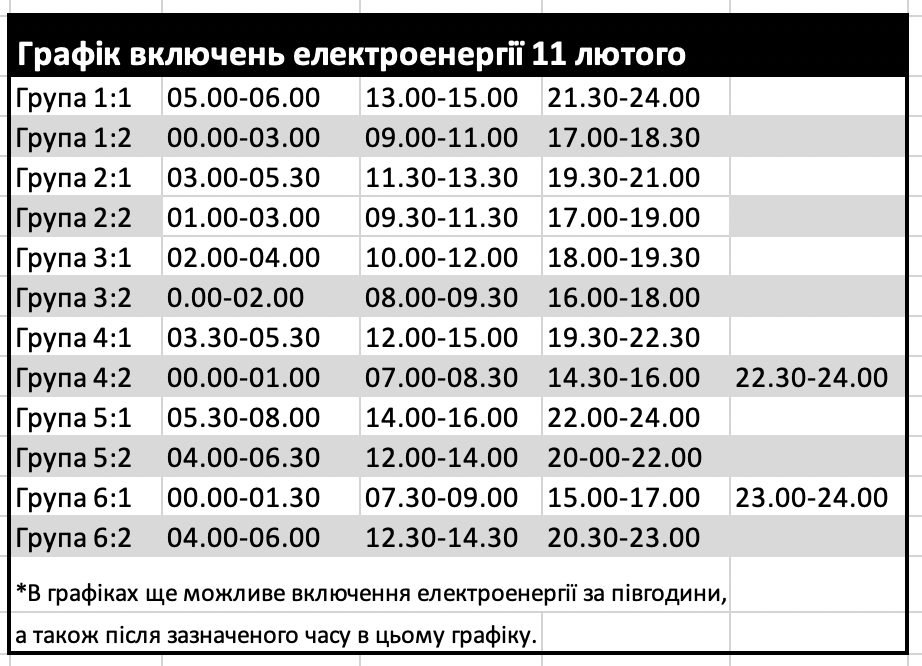 💡💡💡Графік світла 11 лютого у Тернопільській області!