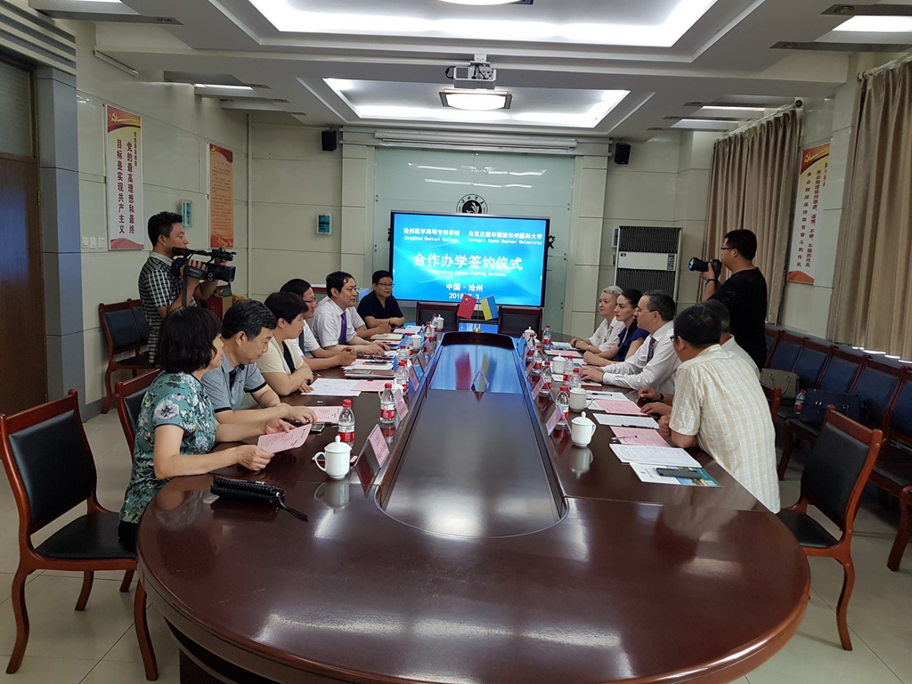 Під час візиту відбулася зустріч з керівництвом Медичного коледжу Цанджоу, під час якої обговорили можливості навчання китайських студентів в ННІ медсестринства Тернопільського медуніверситету. У цьому напрямку уже розпочато розбробку двох програм здобуття вищої освіти. Одна з них передбачає підготовку бакалаврів медсестринства для тих, хто уже закінчив навчання в коледжі Цанджоу за спеціальністю «Медсестринство». Ці молоді люди здобуватимуть освітній рівень бакалавра в Тернопільському медичному університеті на денній формі навчання упродовж двох років. Уже з вересня цього року китайська сторона розпочне формування груп студентів для посиленого вивчення англійської мови, оскільки їх навчання у ТДМУ здійснюватиметься англійською мовою.