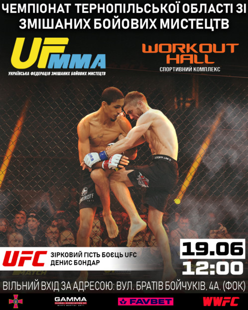19 червня у Тернополі відбудеться Відкритий чемпіонат області зі змішаних бойових мистецтв ММА. Організовують змагання представники обласної федерації ММА та спортивного комплексу «Workout Hall».