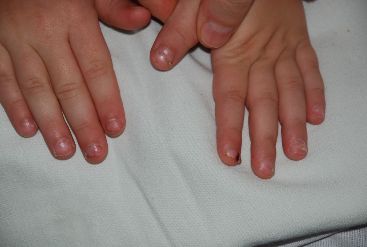 У англомовних джерелах є вказівки на той факт, що через 1-2 місяці після перенесеного синдрому у пацієнтів може спостерігатися ураження (відшарування) нігтів – оніхомадезіс. Аналогічні спостереження мали місце при огляді дітей Тернопільської області у 2016 році через 4-16 тижнів після перенесеної клінічно діагностованої HFMD (фото 5).