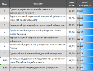 Тернопільський державний медичний університет імені І.Горбачевського посів друге місце серед 202 ВНЗ, які брали участь у дослідженні. Рівень прозорості ТДМУ становить 70,69%, а загальна сума балів – 20,50. Максимальна сума балів, яку міг набрати той чи інший вищий навчальний заклад, становить 29, – повідомляє прес-служба навчального закладу.