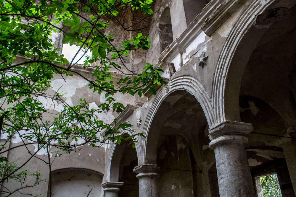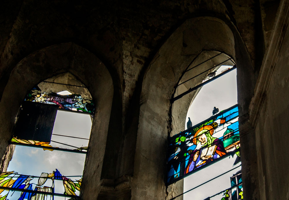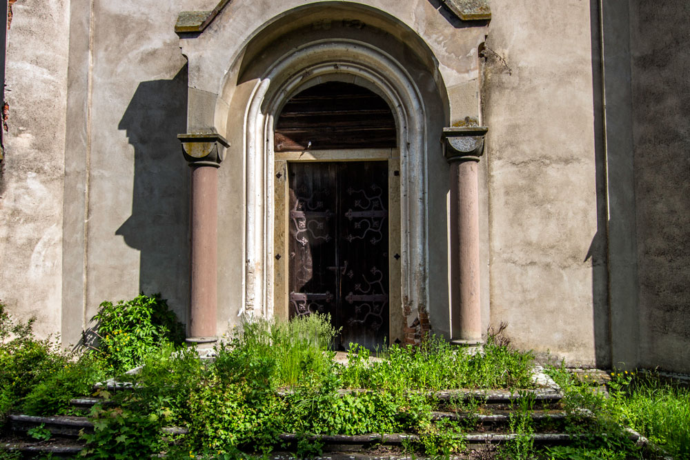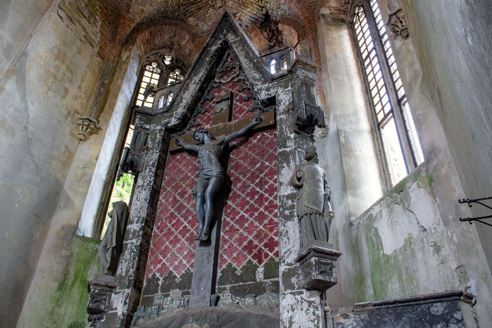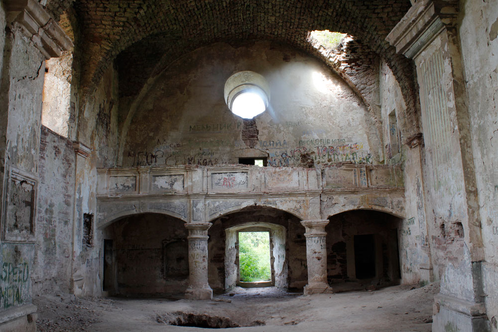 Ще на початку 1990-х тут був дах зі шпилем сигнатури. Сьогодні обвалилося навіть склепіння. Незабаром балки, що впали в залу, вкрилися смарагдовим мохом, лишайниками, папороттю та кущами. Тут можна було б відчути себе як у якомусь загубленому у джунглях місті, якби не сморід дусту.