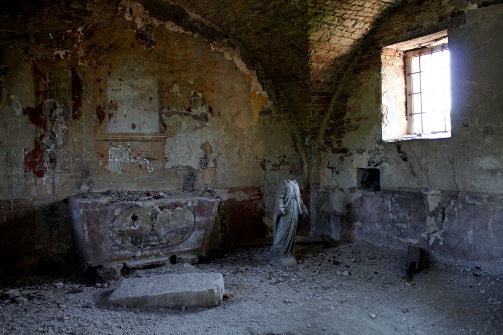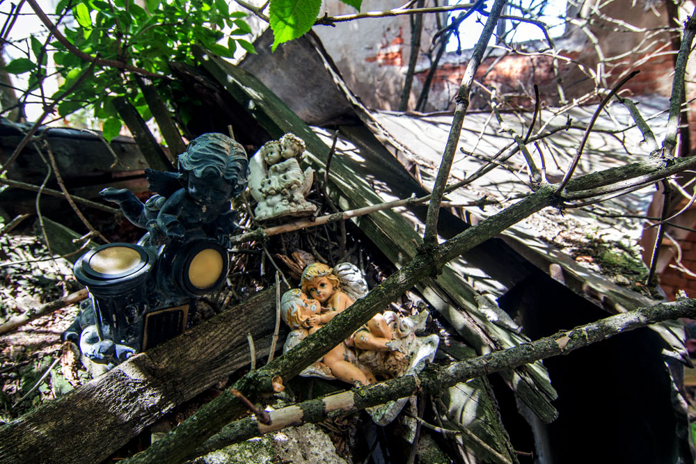 Цікаво, що традиційного смітника, характерного для закинутих споруд, тут немає. Очевидно, люди бояться Бога, однак сюди зносять різноманітні сакральні фігурки, якими селяни у поминальні дні оздоблюють могили (ну не викидати ж їх у смітник?). Пухкенькі янголики серед пустки закинутої каплички виглядають дуже зворушливо.