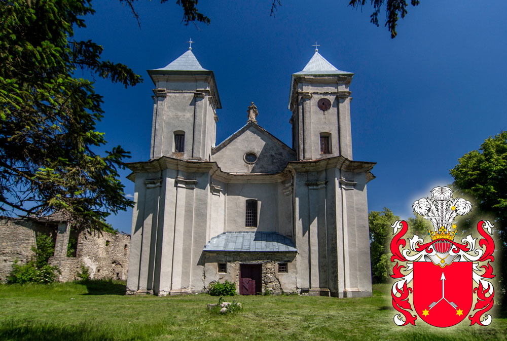 Місцевий костел один з найсимпатичніших в даному огляді, бо зводився не як парафіяльний, а як “палацовий”. Палац, що належав графській родині Лосів, до нашого часу не дожив. Зберігся лише грандіозний та дуже красивий парк. Тут можна побачити навіть надзвичайно рідкісні червонолистяні буки. “Червоних” буків такого віку та розміру в Україні менше десятка!