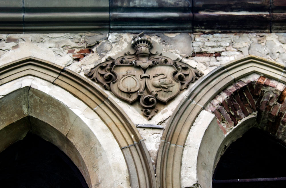 З родзинок цього об’єкту варто відзначити фігурну оковку всіх дверей та частково збережені вітражі.