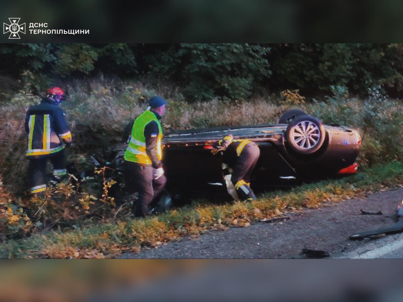 Жахлива аварія на Тернопільщині: внаслідок зіткнення перевернувся автомобіль