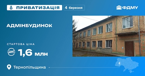 4 березня Фонд держмайна запрошує взяти участь у приватизаційному аукціоні приміщення у Тернопільській області.