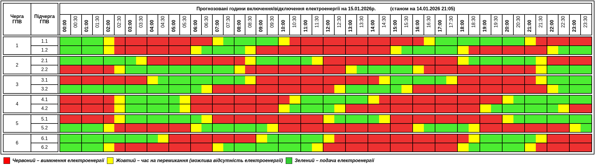 Згідно вказівки НЕК “Укренерго” 15.01.2026 на території Тернопільської області діятиме Графік погодинних відключень (ГПВ).