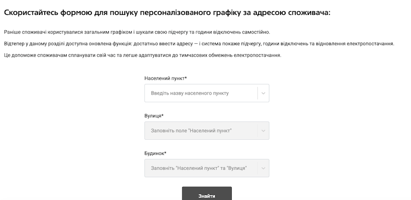 Раніше споживачі користувалися загальним графіком і шукали свою підчергу та години відключень самостійно.