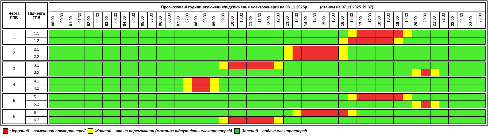 8 листопада 2025 року на території Тернопільської області відповідно до вказівки НЕК «Укренерго» буде введено Графік погодинних відключень (ГПВ).