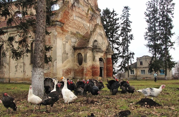 У Великому Ходачкові, що на Тернопільщині, розташовані одні з найбільш захоплюючих руїн на території області – костел, який був побудований наприкінці 19 століття. Проте, через безліч історичних катаклізмів, сьогодні це лише пам’ять про колишню велич. Весь цей час в приміщенні, яке залишилось, незмінними “парафіянами” стали індики та гуси, що зараз займають залишки храму, як свої місця для відпочинку.