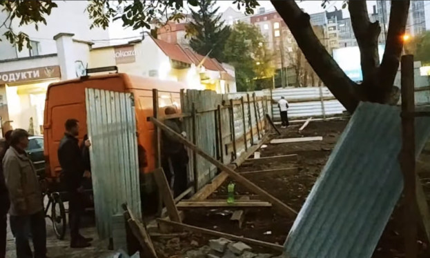 Тернополяни “знесли” паркан сумнівної будови у центрі міста (фото)