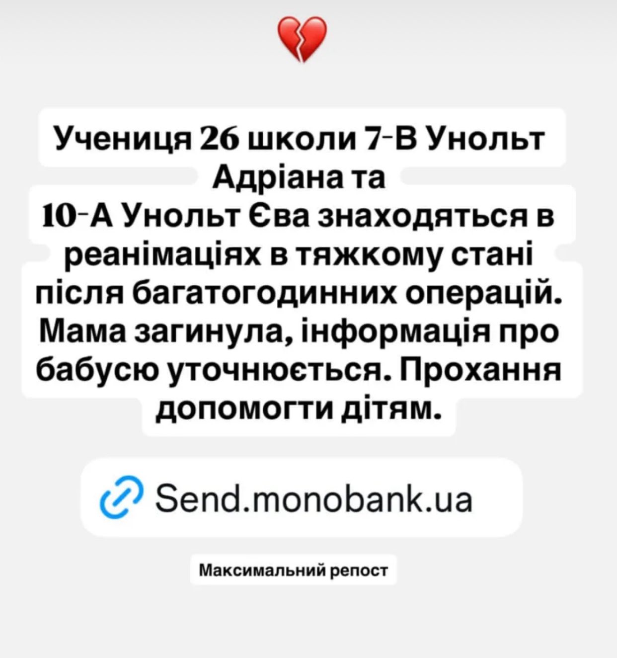 У цей складний час рідні та близькі просять про підтримку для донечок, які втратили свою маму. Благодійну допомогу можна надіслати за посиланням: https://send.monobank.ua/jar/2RpyzMQZ4n.
